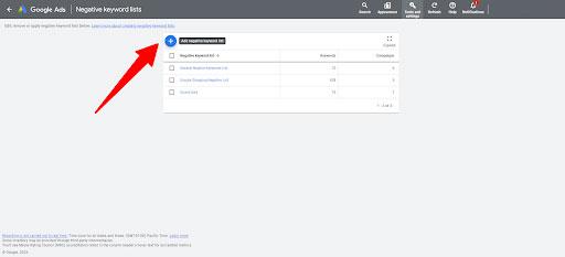 in the upper right corner of your account. - Under Shared library, click Negative keyword lists.