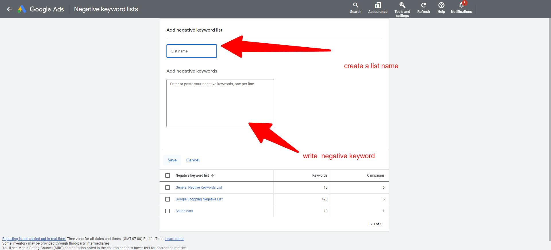 - Add negative keywords: Once you’ve identified the negative keywords, you can add them to your Google Ads campaign. By adding these negative keywords, you instruct the platform not to show your ads when those terms are part of a search query.